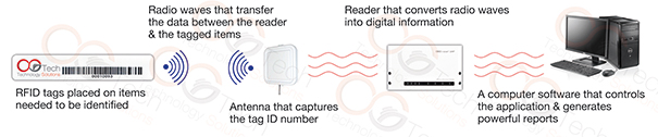 An RFID system uses tags, attached to the objects to be identified. Two-way radio transmitter-receivers called readers that send a signal to the tag and read its response and convert it to digital information that the host computer can understand, thus different reports are generated. See figure1